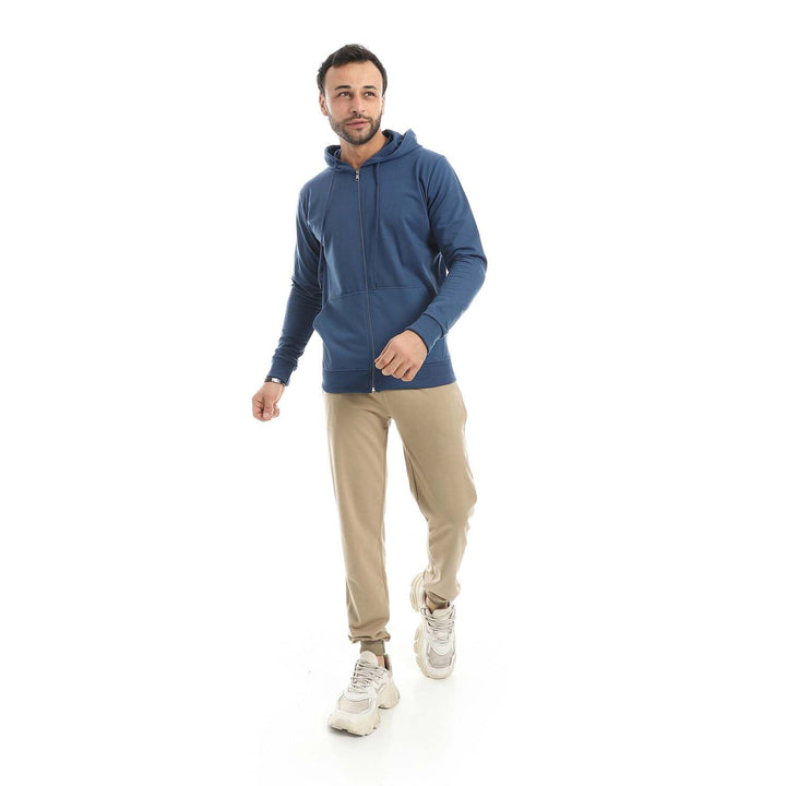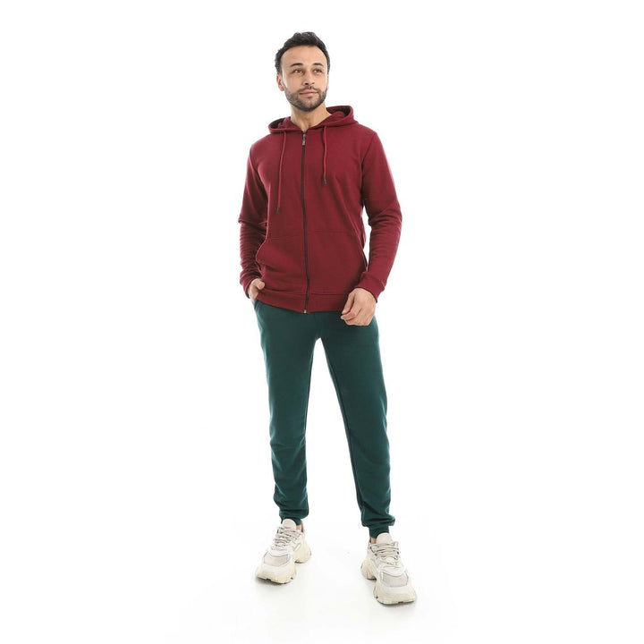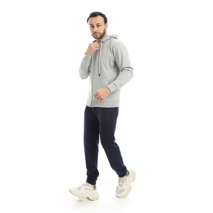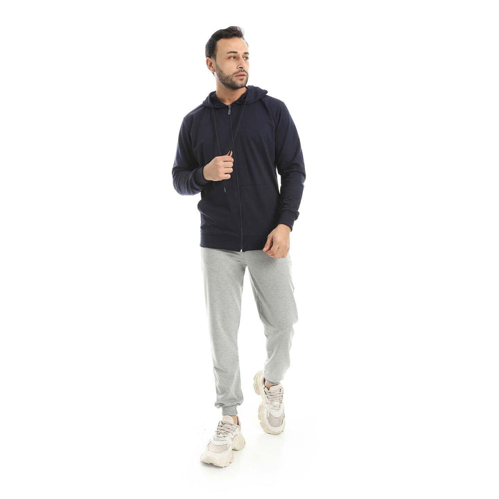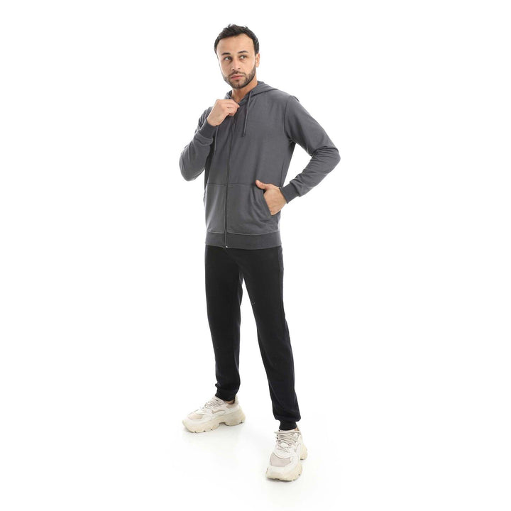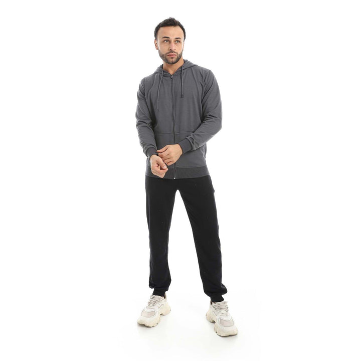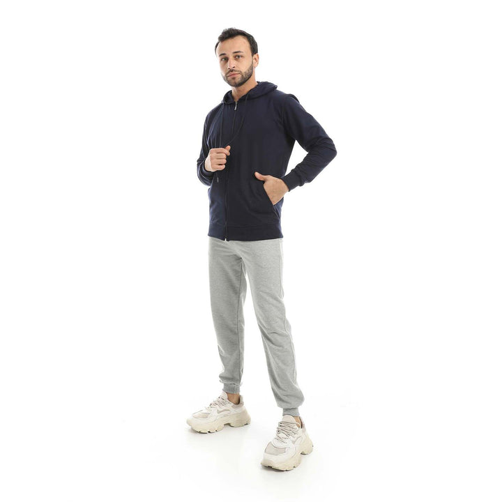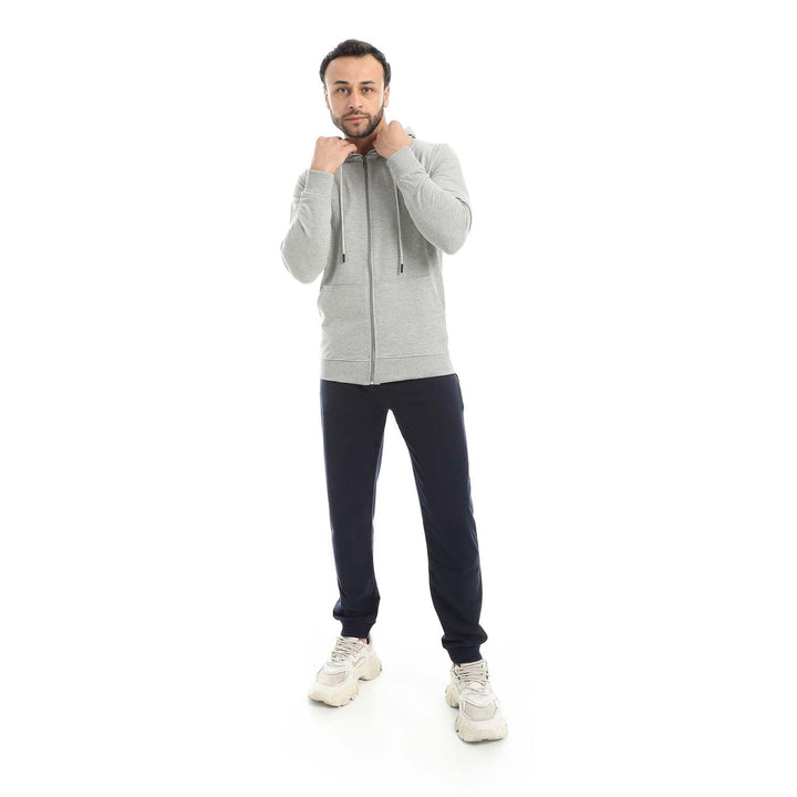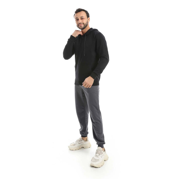 • A modern set consisting of a long zippered hoodie and plain pants with a comfortable design.