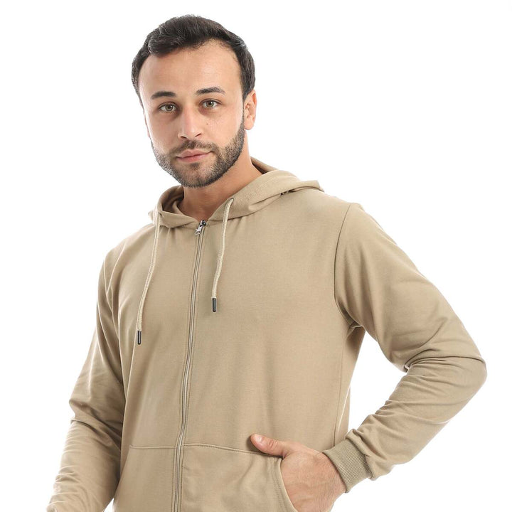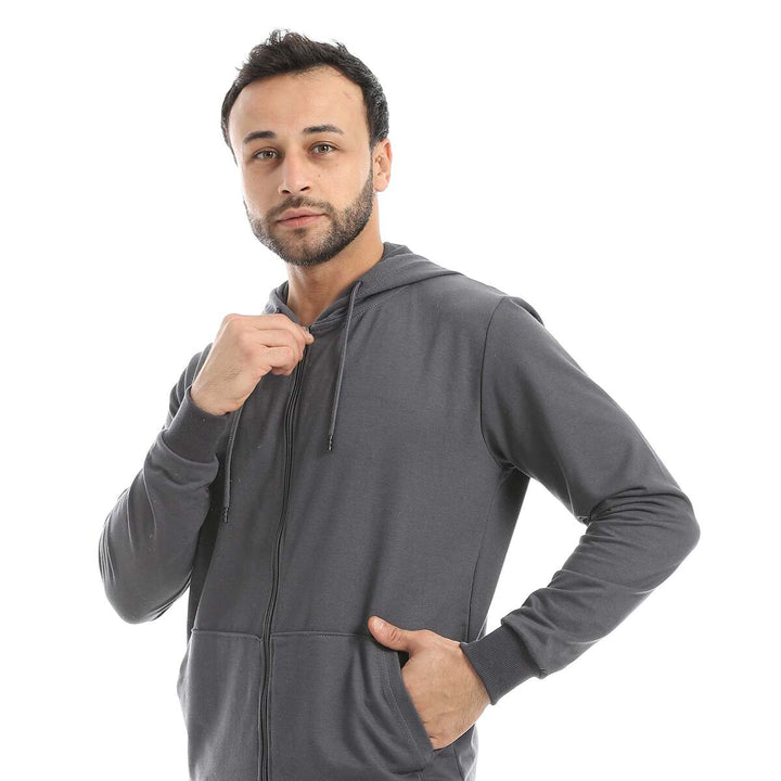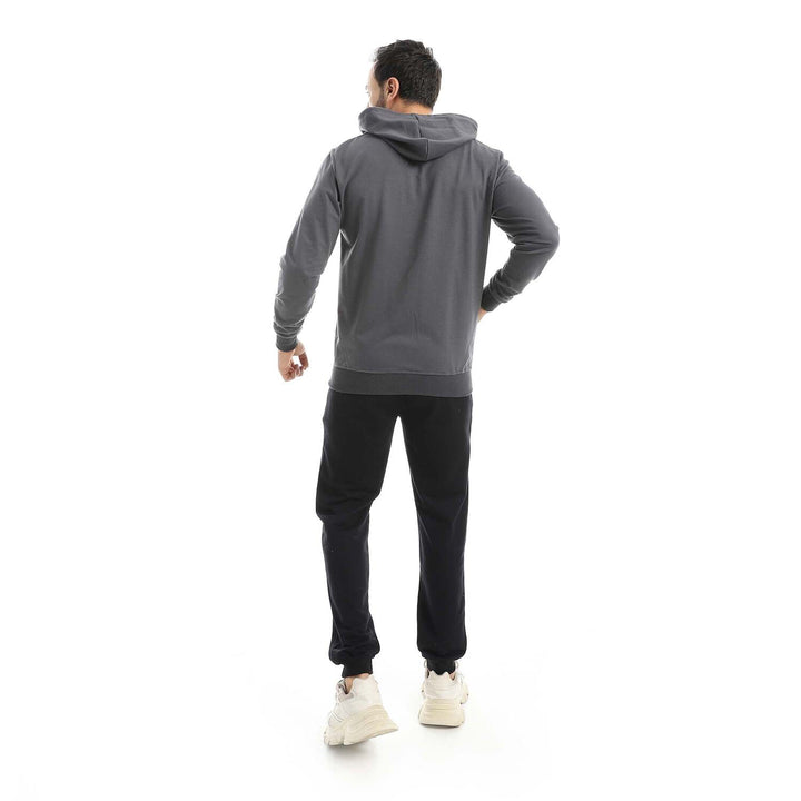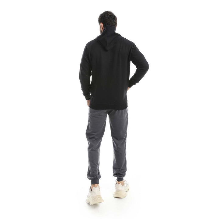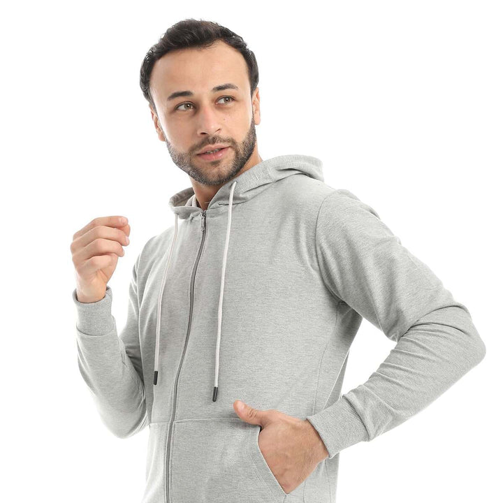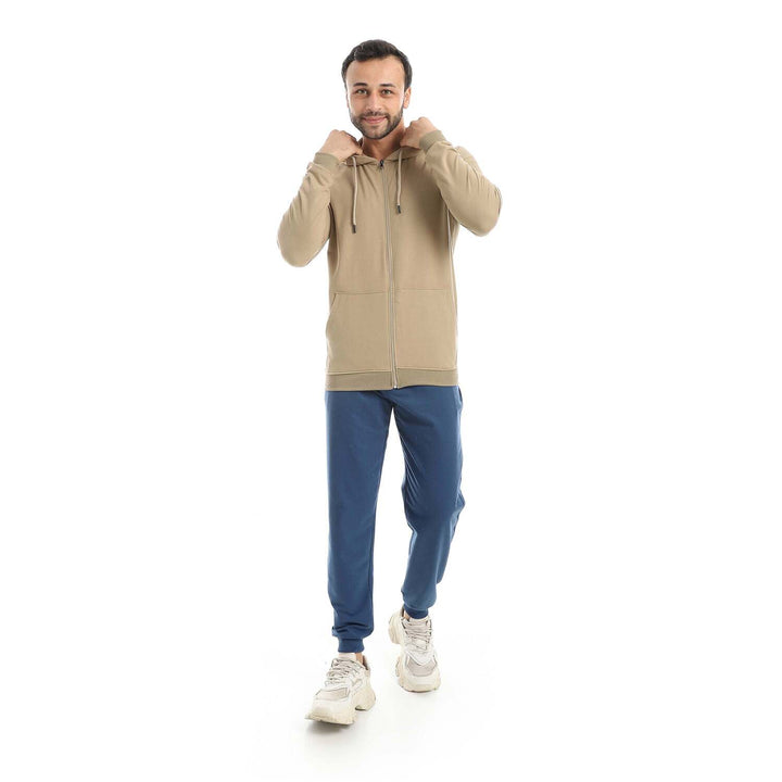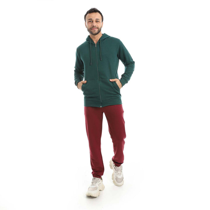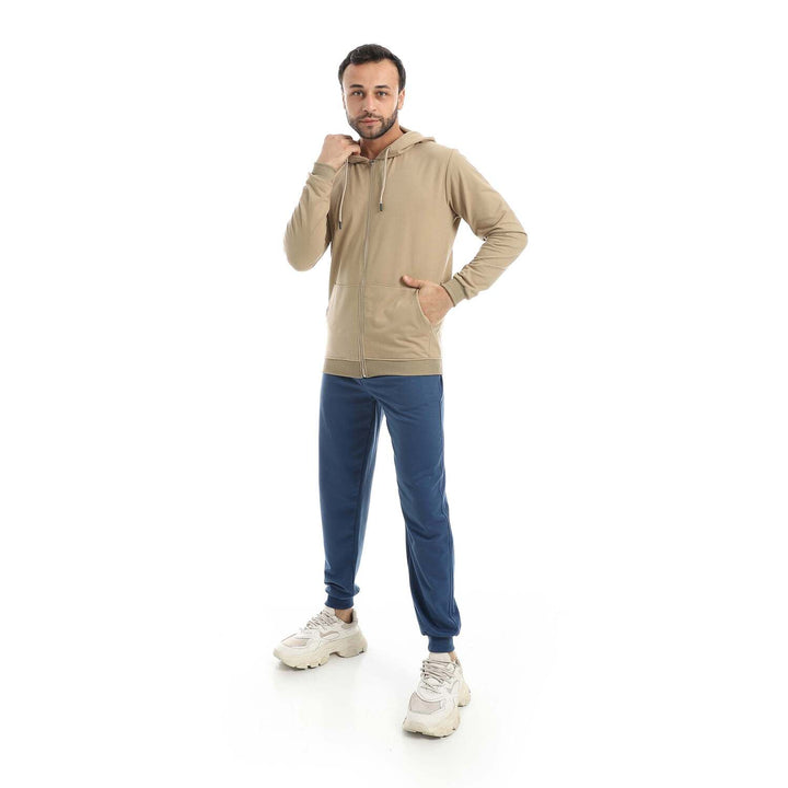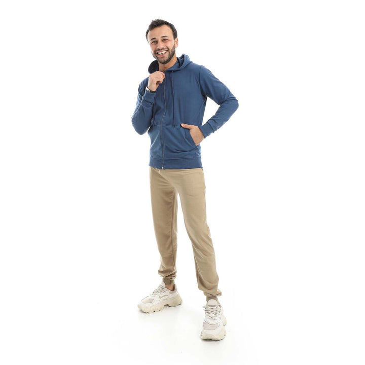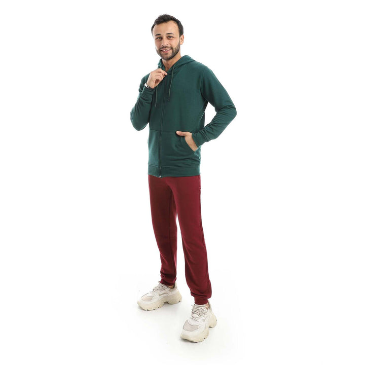 • A modern set consisting of a long zippered hoodie and plain pants with a comfortable design.