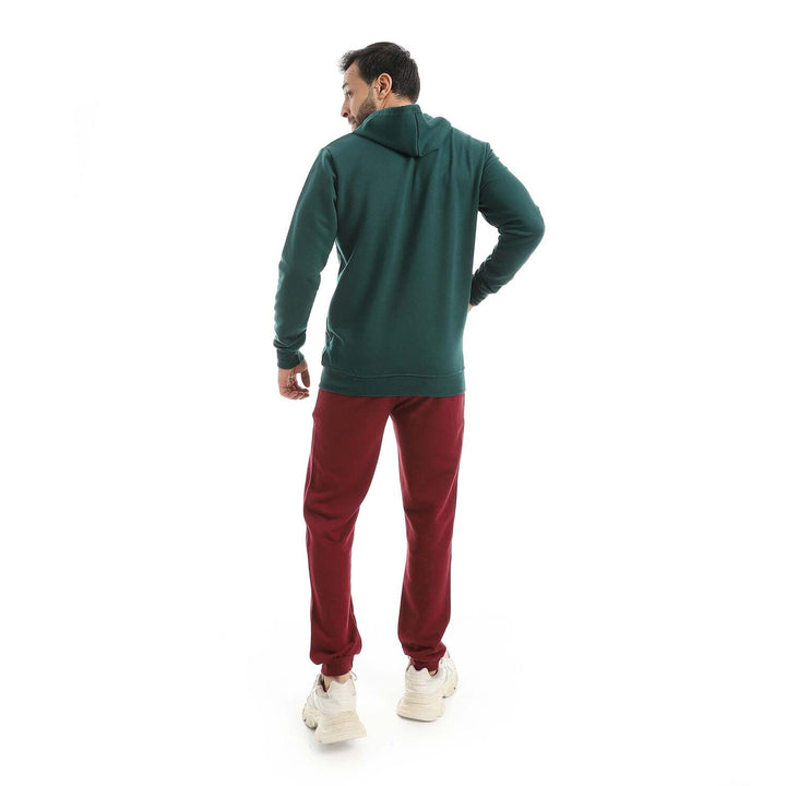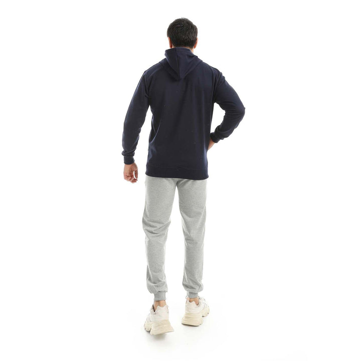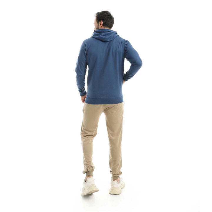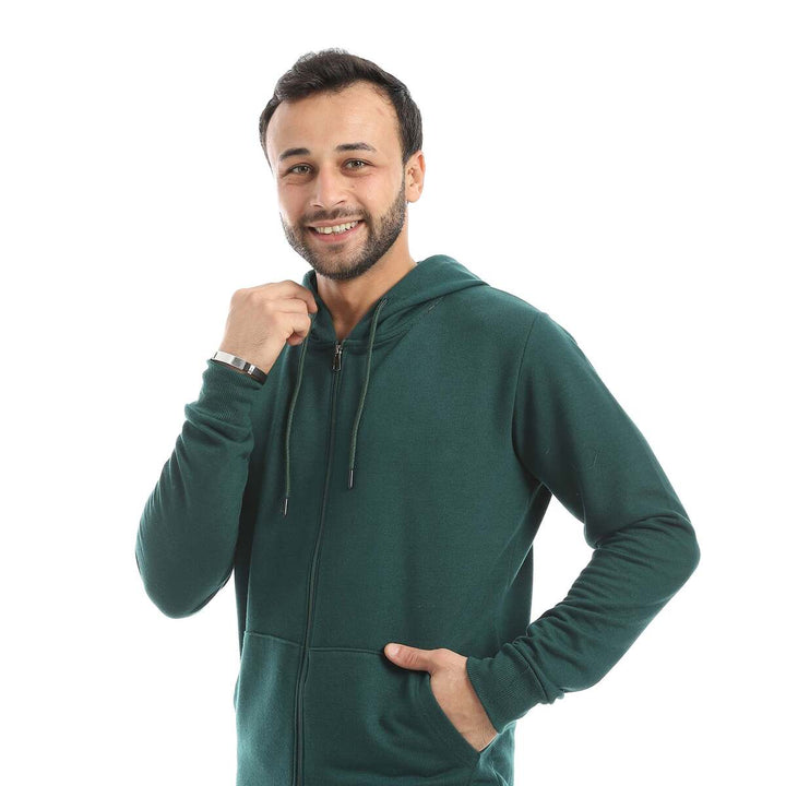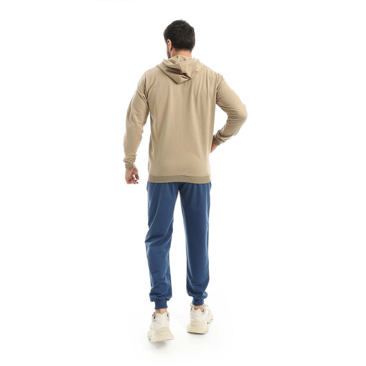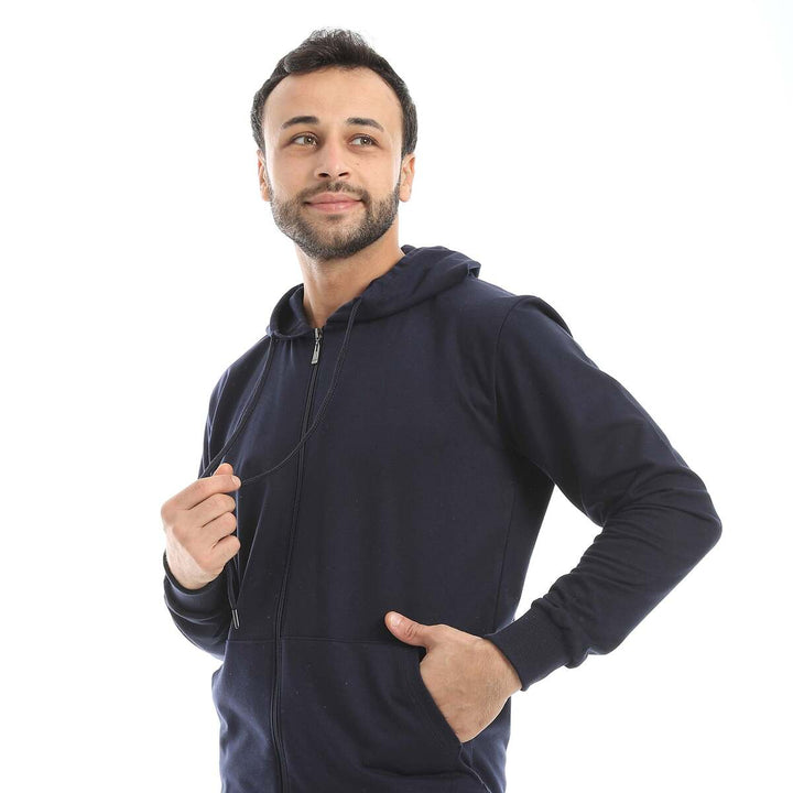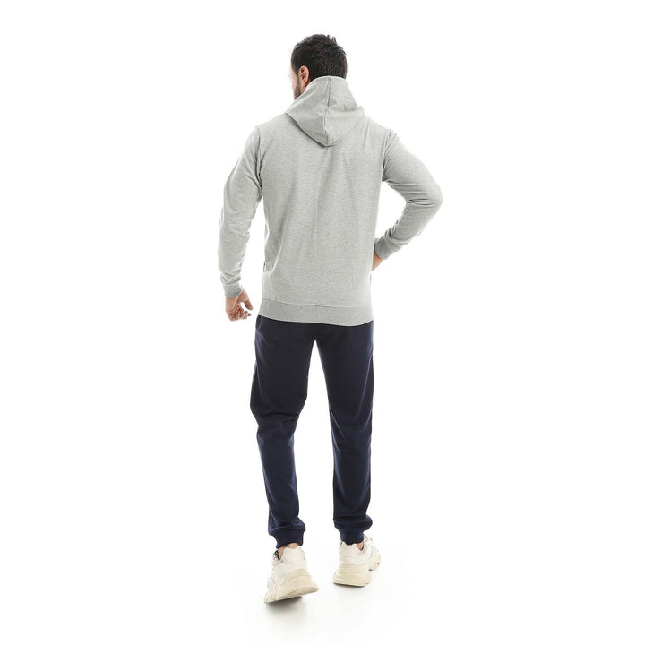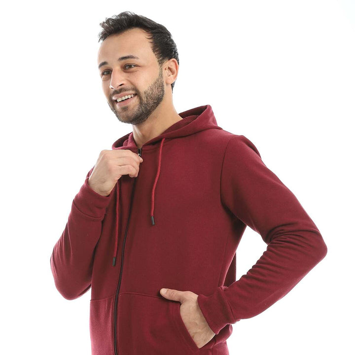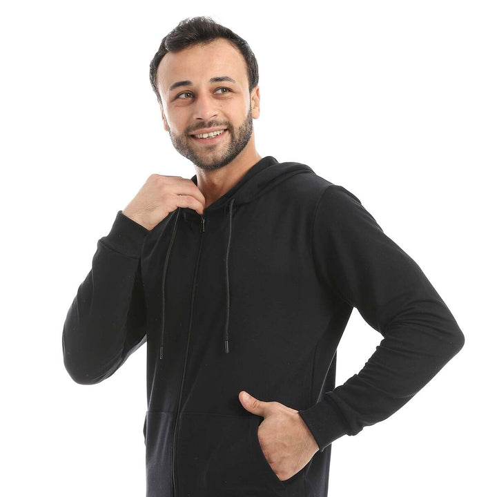 • A modern set consisting of a long zippered hoodie and plain pants with a comfortable design.