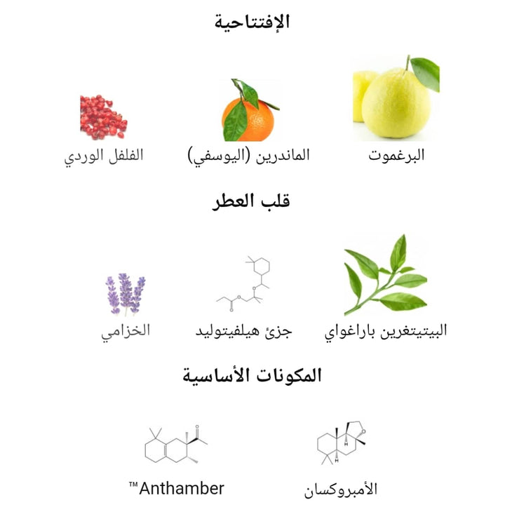 Bergamot - Mandarin - Pink Pepper - Paraguayan Petitgrain - Helvitolide Molecule - Lavender - Ambroxan - Anthampur.