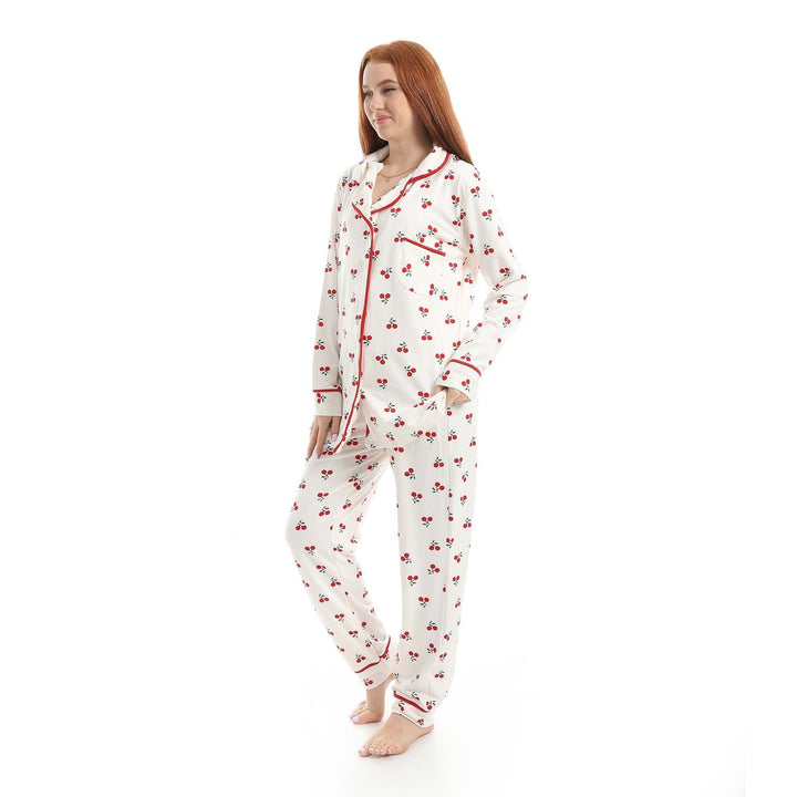 • Women's classic comfortable pajamas with a modern cherry print design.