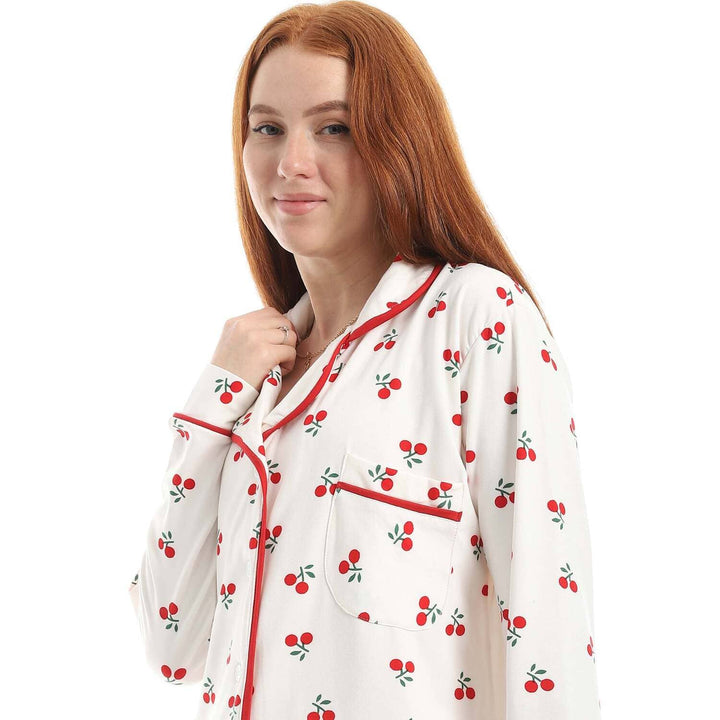 Classic cherry print long-sleeved pajamas