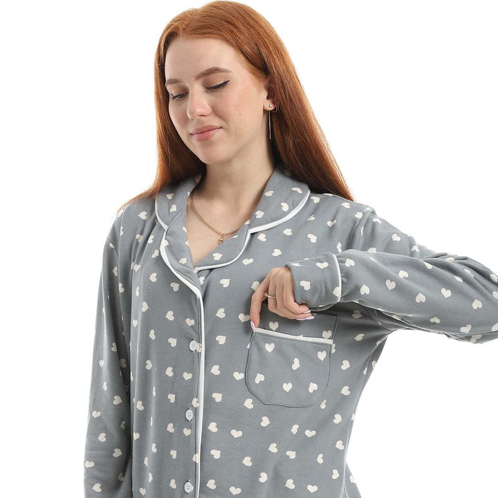 • Classic women's pajamas with a comfortable design and an elegant heart print.
