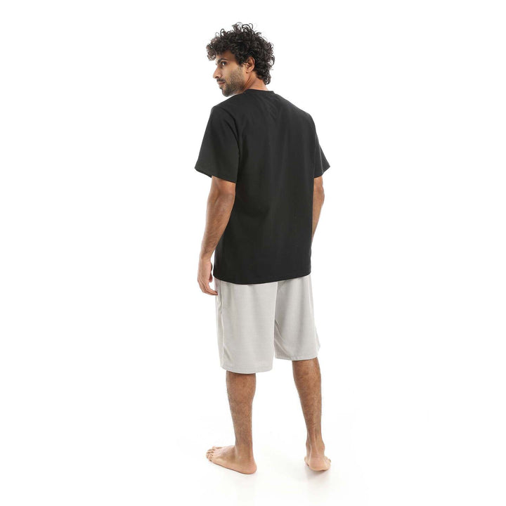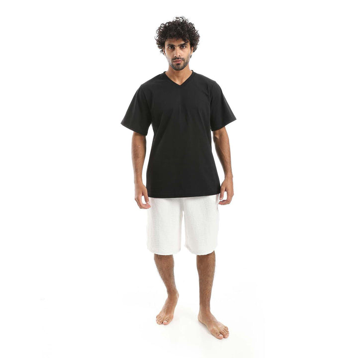 • Men's V-neck pajamas with comfortable plain shorts.