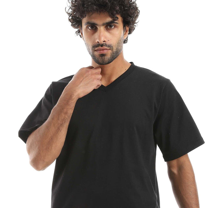 Men's V-neck pajama set with shorts, made from 100% cotton