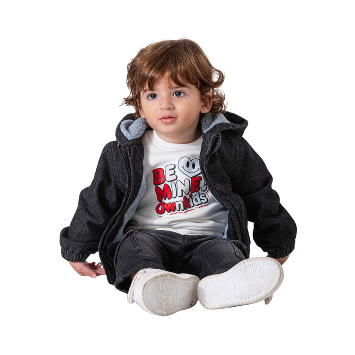 • جاكيت جينز للأطفال مبطن بطبقة فرو ناعمة لتوفير الدفء والحماية في الأيام الباردة.