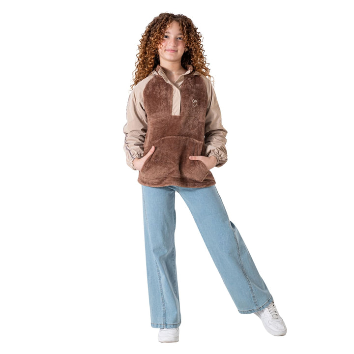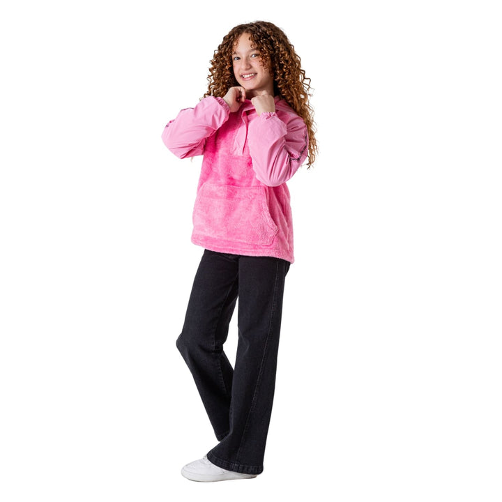 • تيشيرت هودي بناتي مبطن بالفرو ومقاوم للماء لحماية إضافية في الأجواء الباردة والممطرة.
