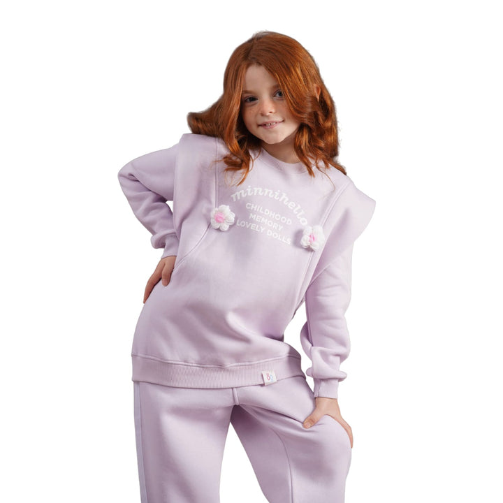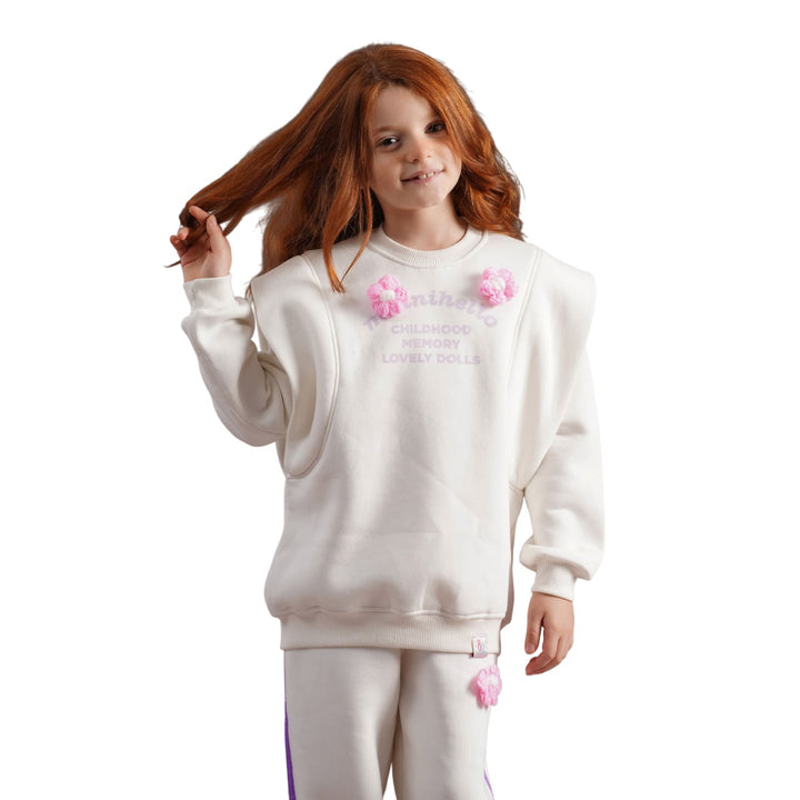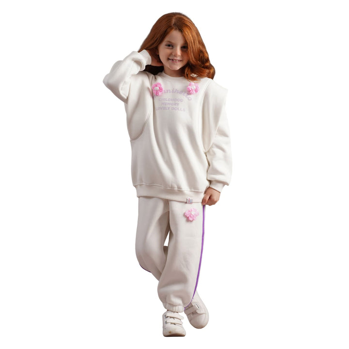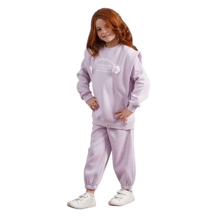 • Give your child warmth and style on cold winter days with a girls' winter set consisting of a sweatshirt and pants made from high-quality 100% cotton Melton fabric.