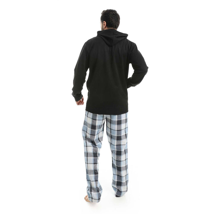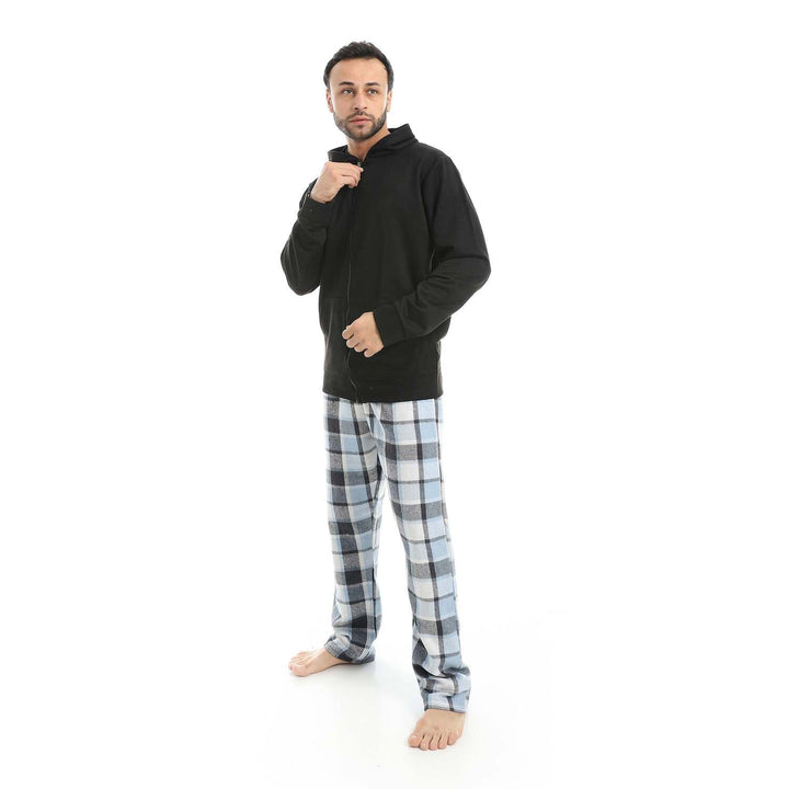 Velvet pajama set with zipper, hood, and plaid pants