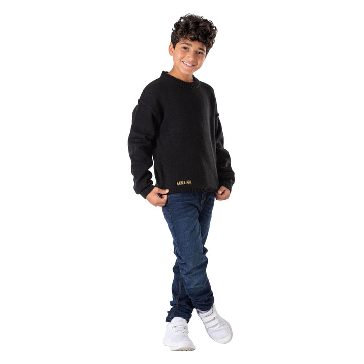 • بلوفر تريكو ولادي بتصميم كلاسيكي دافئ ومريح للأيام الباردة.