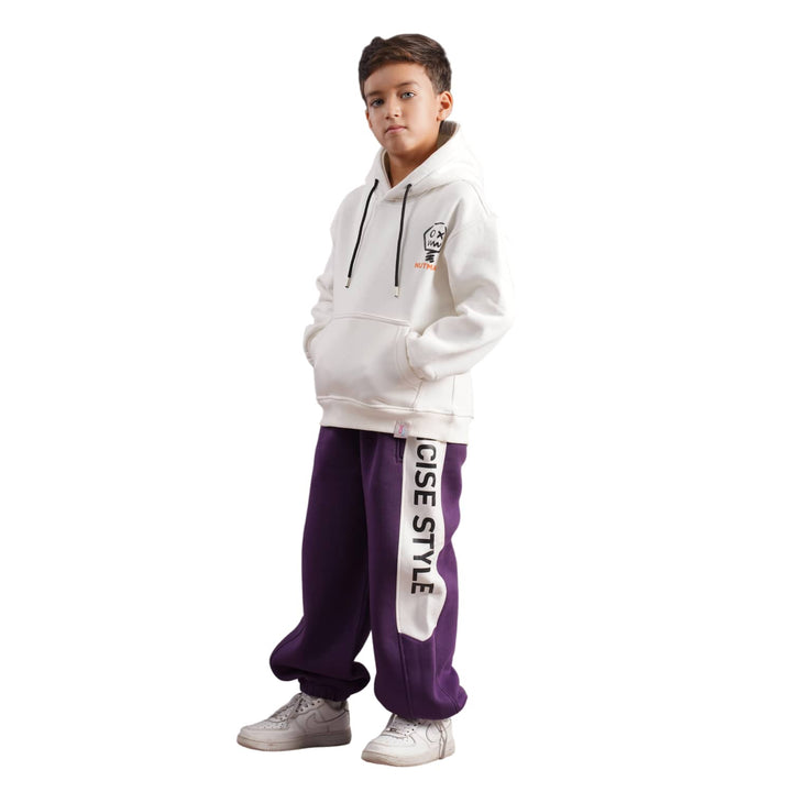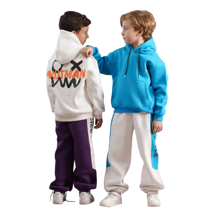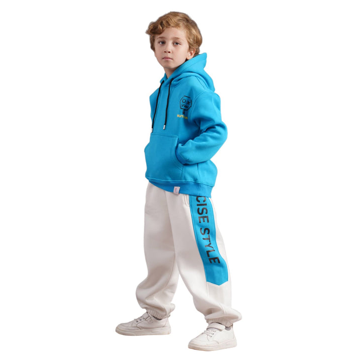 • امنحي طفلك الدفء والأناقة في أيام الشتاء الباردة مع طقم أولادي شتوي مكون من سويت شيرت هودي وبنطلون مصنوعين من خامة ميلتون قطن 100% عالية الجودة.