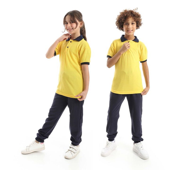 • طقم أطفال مكون من بولو نصف كم مع بنطلون بتصميم أنيق ومناسب للإستخدام اليومي.