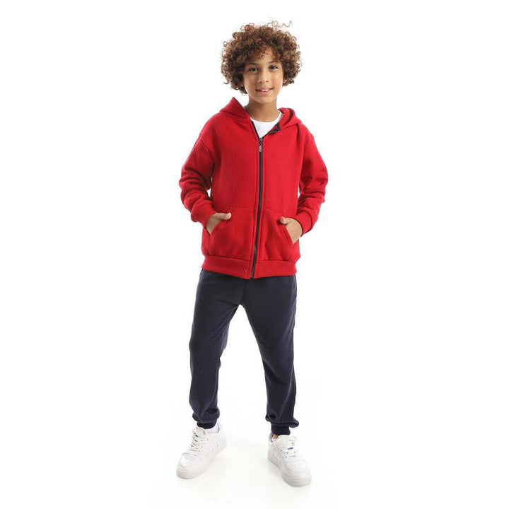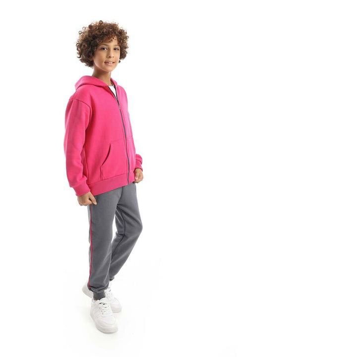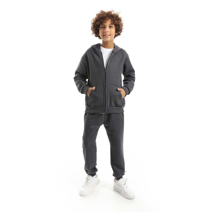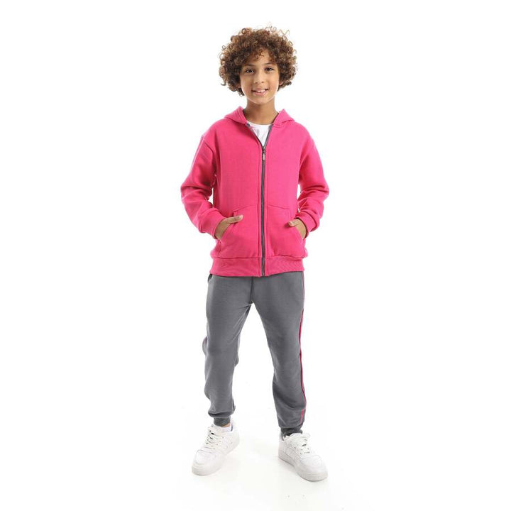 • طقم أطفال مكون من سويت شيرت بسحاب وبنطلون- بتصميم عصري ومريح يناسب الإستخدام اليومي.