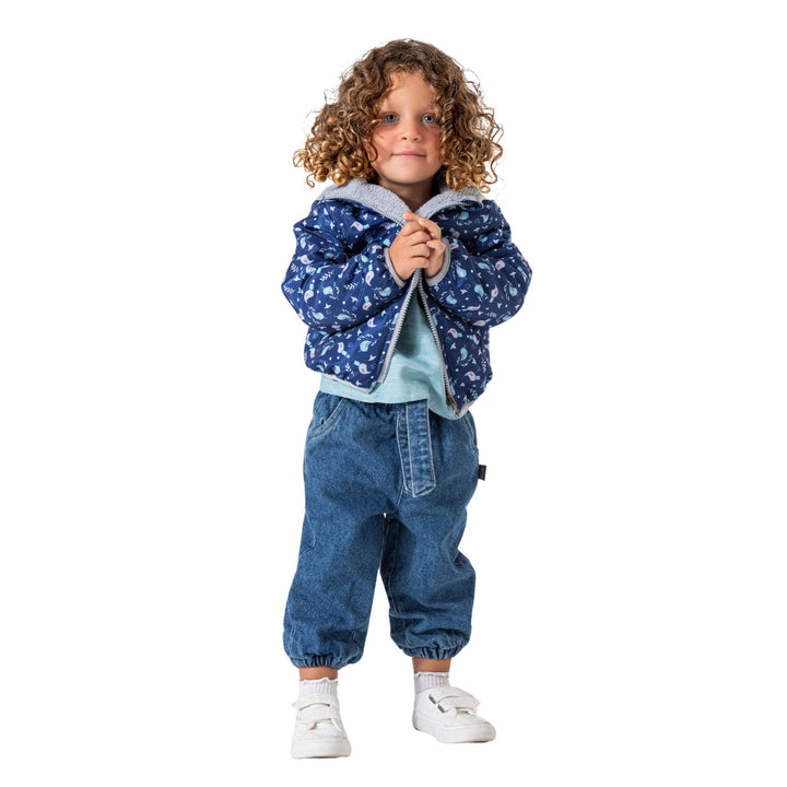 جاكيت مزدوج الوجه وتر بروف مع فرو للأطفال