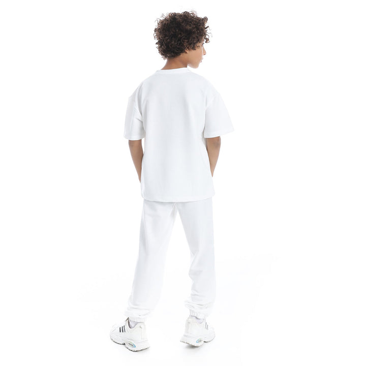 • يأتي الطقم بقصة عادية مريحة مناسبة للحركة طوال اليوم، مع نقشة مطبوعة جذابة على الجزء الأمامي تضيف لمسة من الحيوية تناسب الأولاد والبنات.