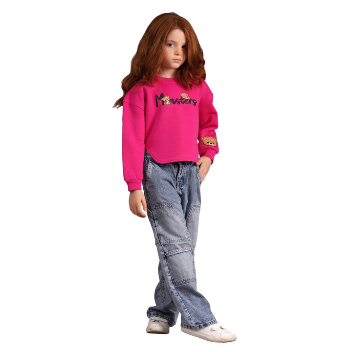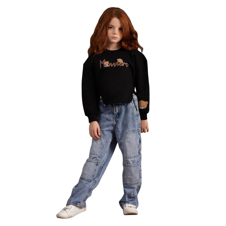 سويت شيرت بناتي شتوي كروب طباعة دبدوب أنيق
