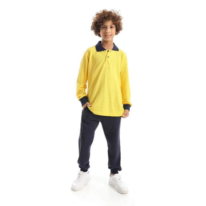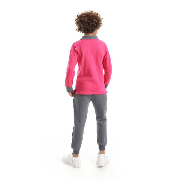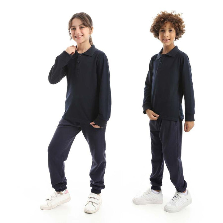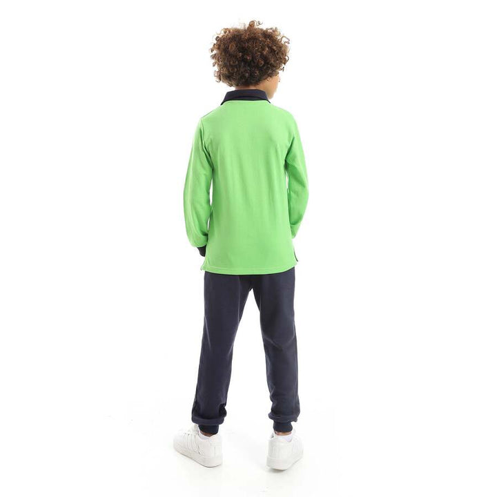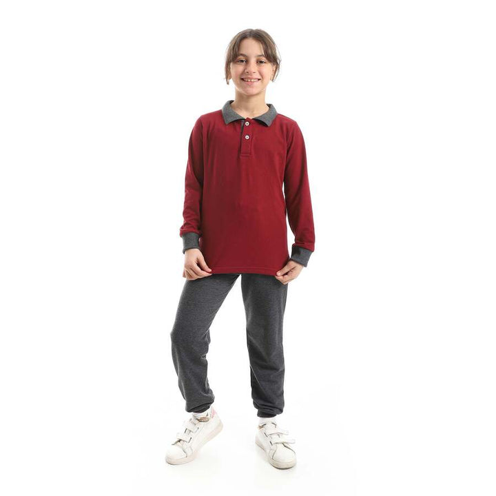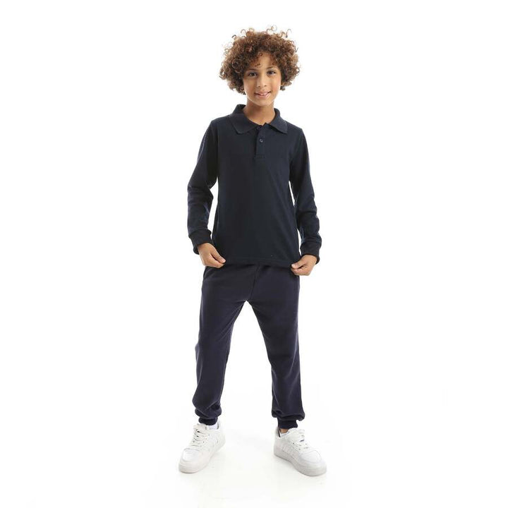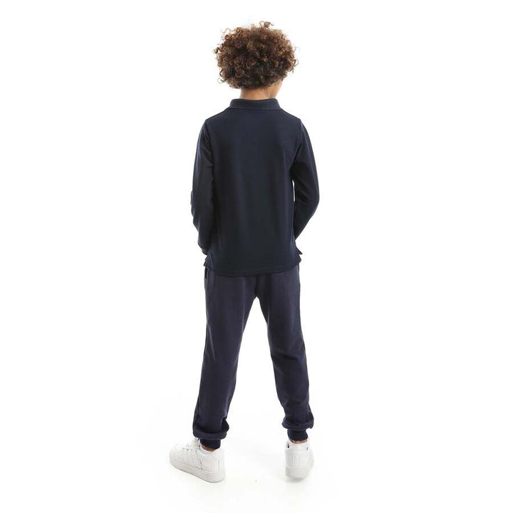 • طقم أطفال أنيق مكون من قميص بولو بأكمام طويلة مع بنطلون عملي ومريح.