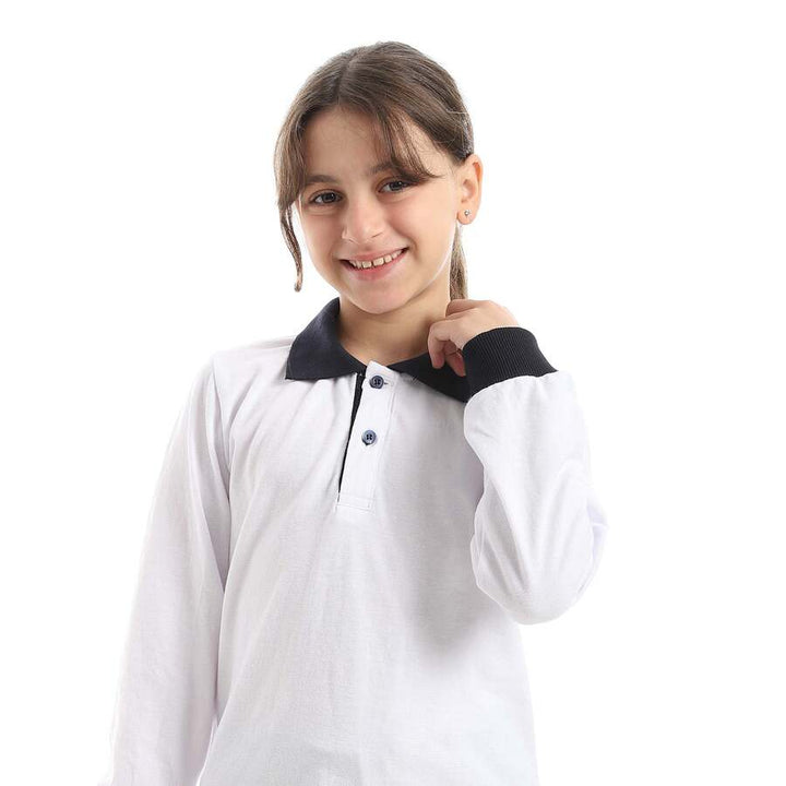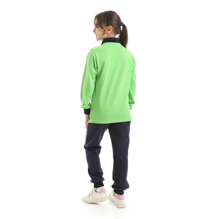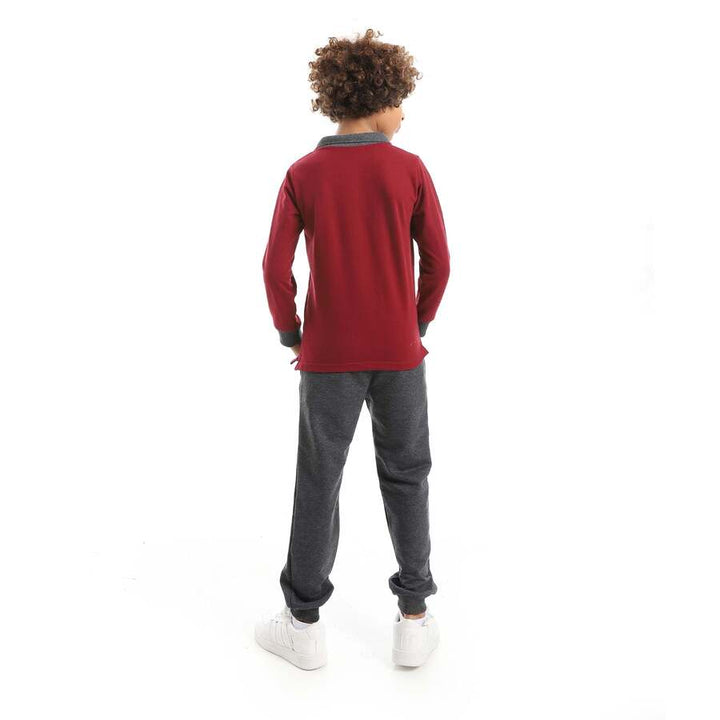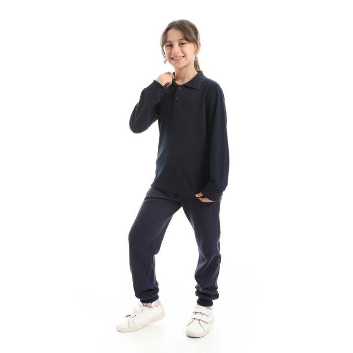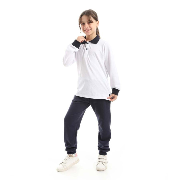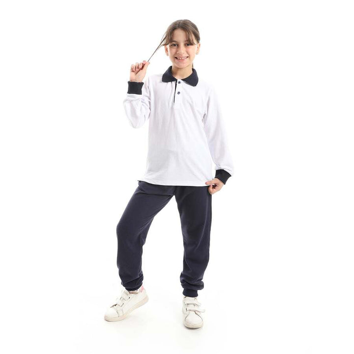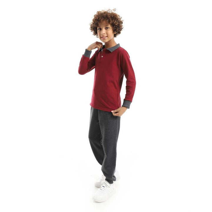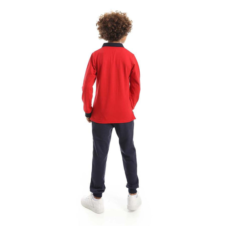 • طقم أطفال أنيق مكون من قميص بولو بأكمام طويلة مع بنطلون عملي ومريح.