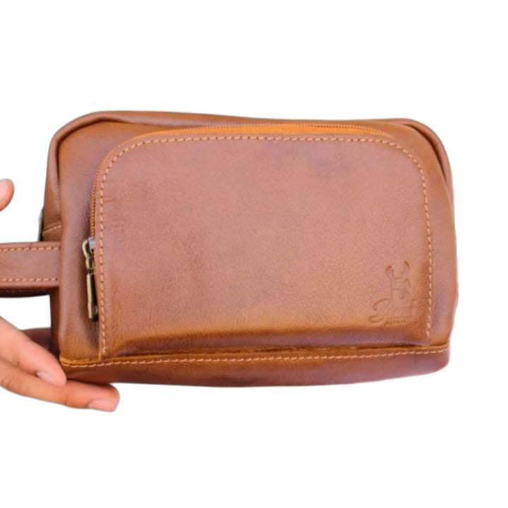 حقيبة يد رجالي جلد طبيعي تصميم أنيق متعدد الجيوب