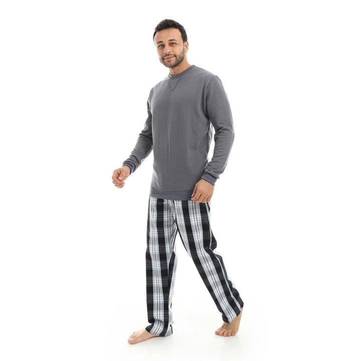 بيجامة رجالي صيفي ميلتون برقبة دائرية وبنطال منقوش