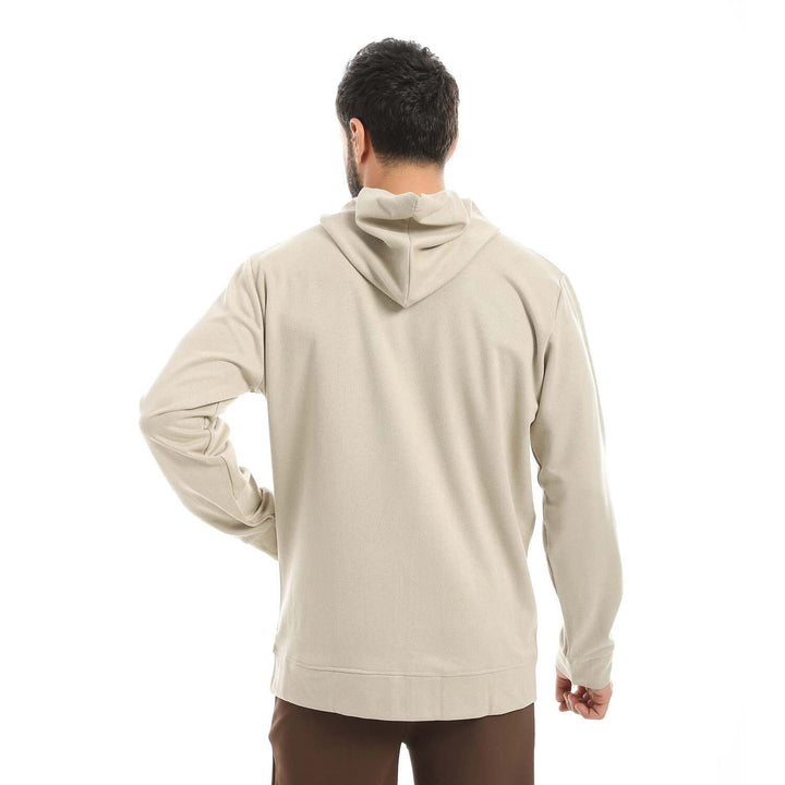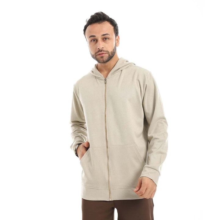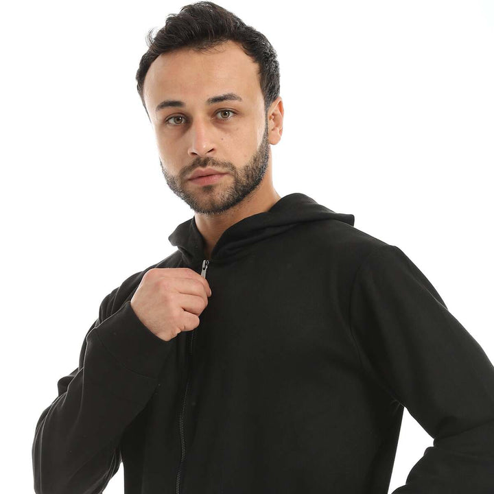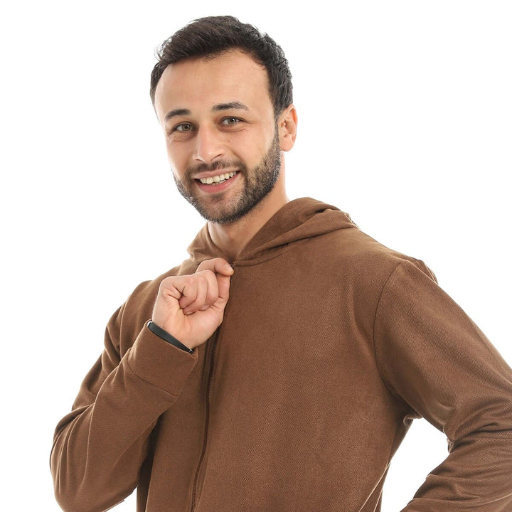 • سويت شيرت رجالي مخملي ناعم بتصميم عملي مزوّد بسحاب كامل وغطاء رأس.