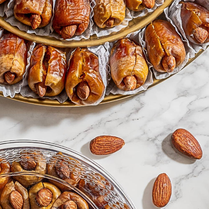 • تمر فاخر منزوع النوى ومحشو بحبات لوز طازجة مختارة بعناية.