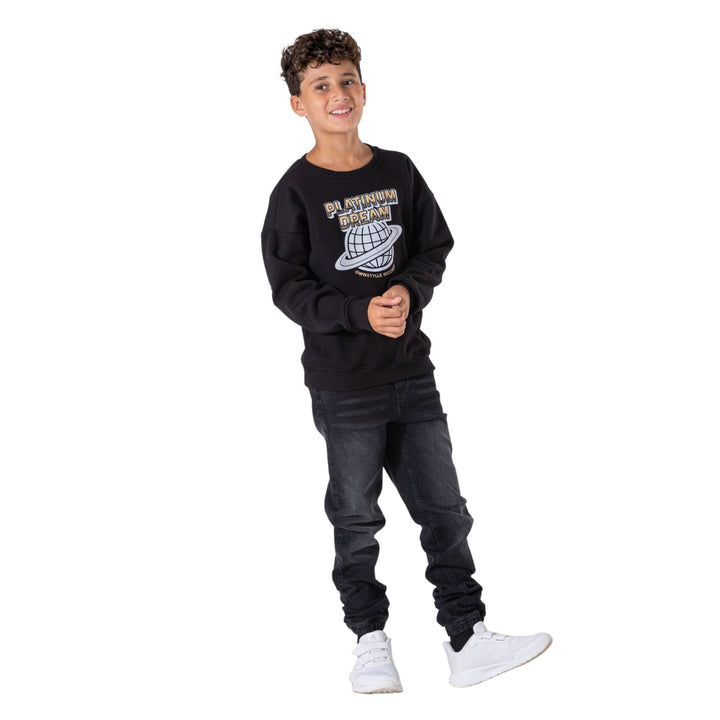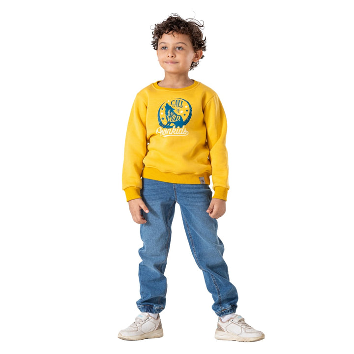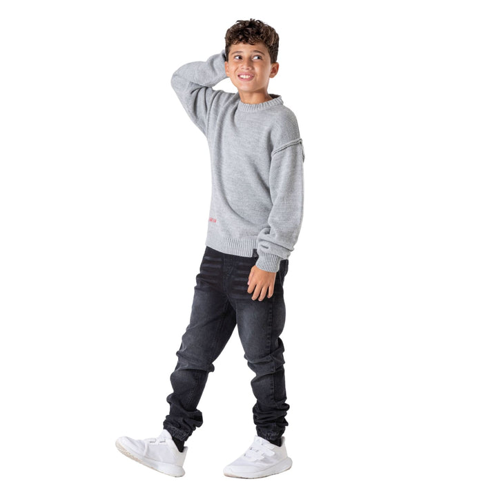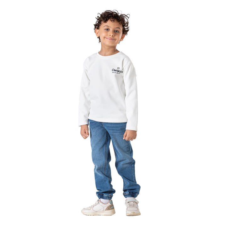 • بنطلون جينز ولادي بتصميم عملي وعصري مناسب للمدرسة والخروج اليومي.