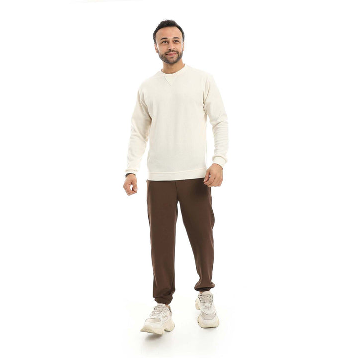 بيجامة أنيقة رجالية بنطلون بني – أوف وايت