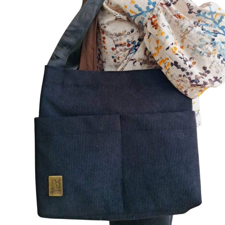 توتي باج حريمي قطيفة مضلعة بجيوب داخلية من الجلد الطبيعي