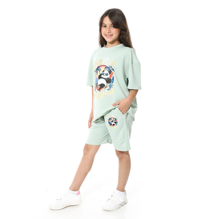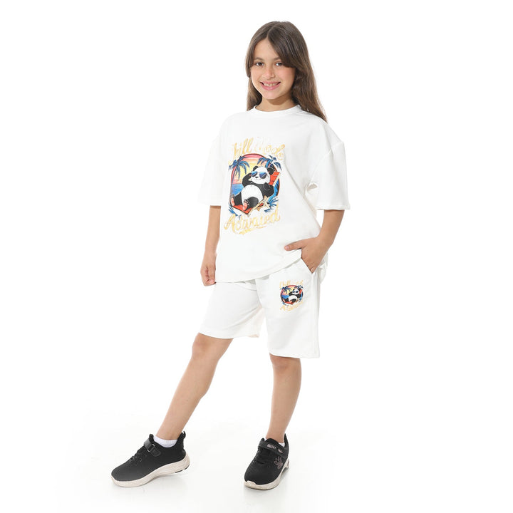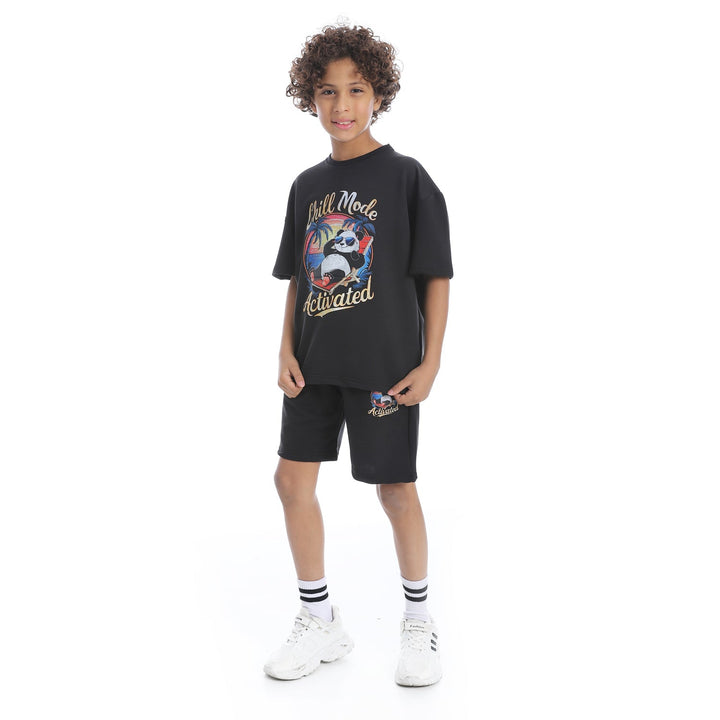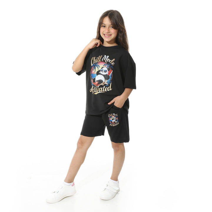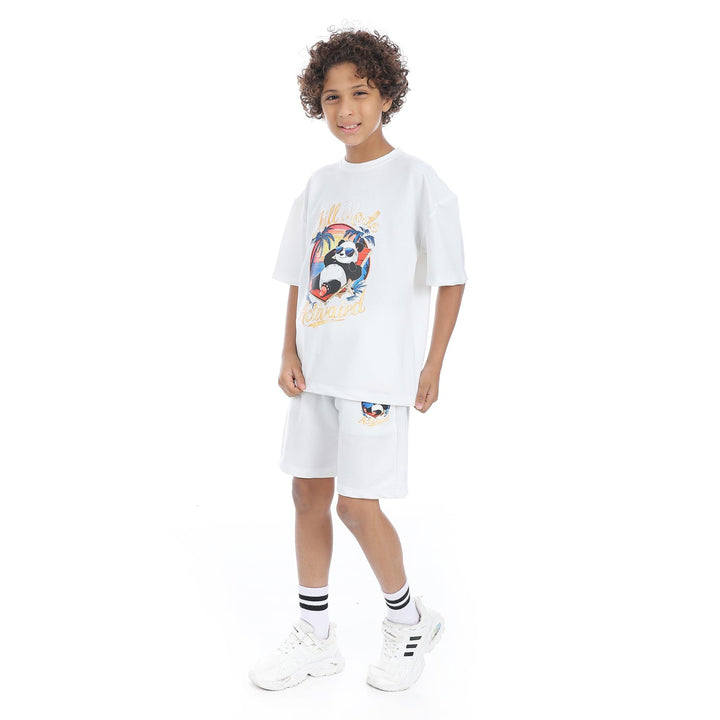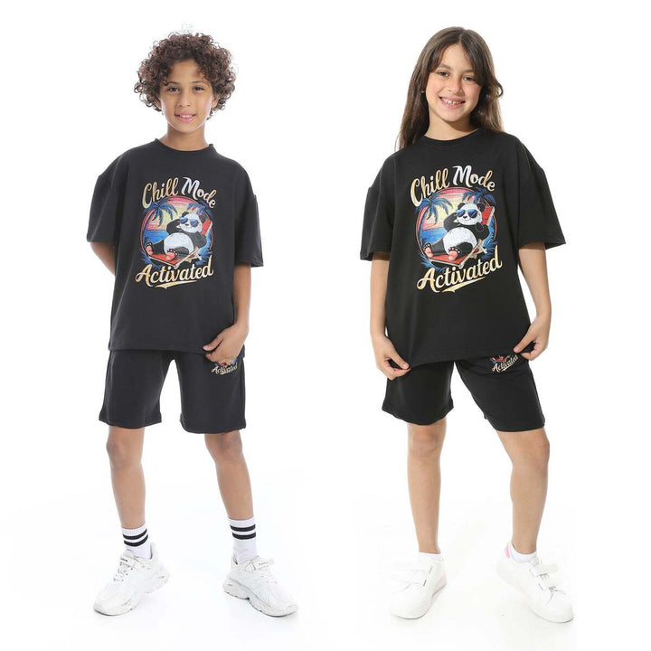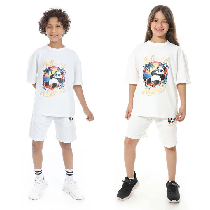 طقم بيجامة أطفالي صيفي طبعة باندا من الأمام للجنسين