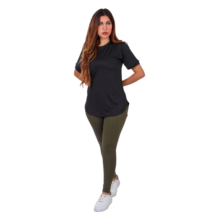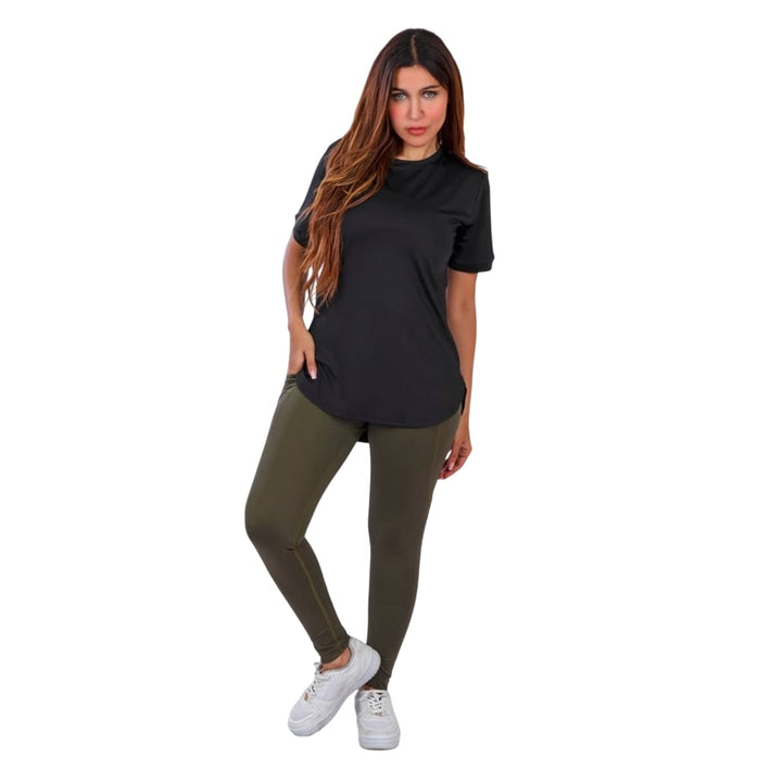 • طقم رياضي متكامل يجمع بين ليجن وتيشيرت نصف كم.