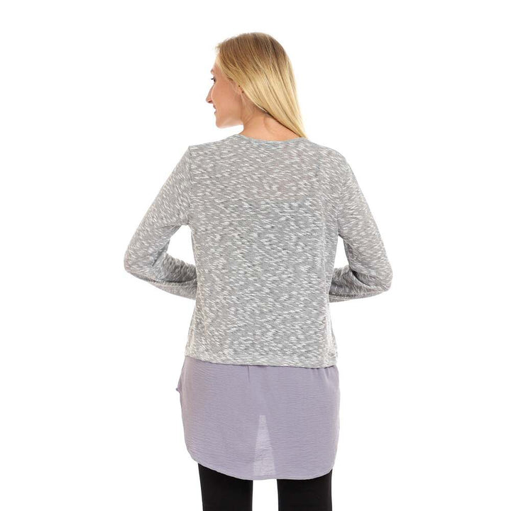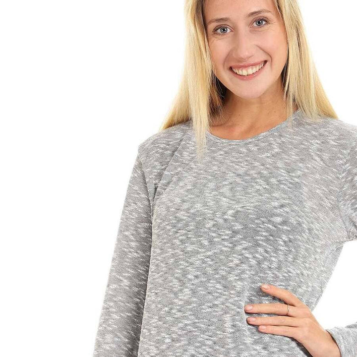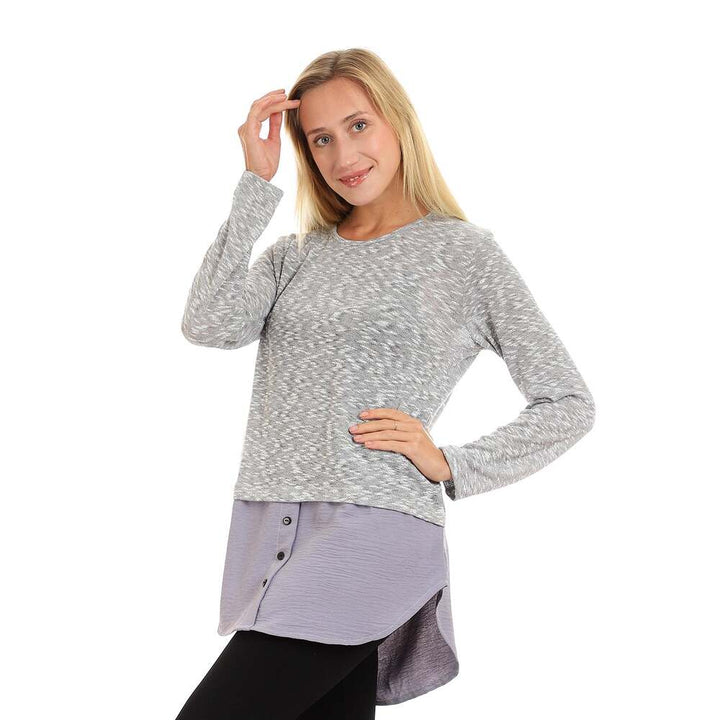 بلوزة نسائية بأزرار زخرفية ورقبة دائرية رمادي
