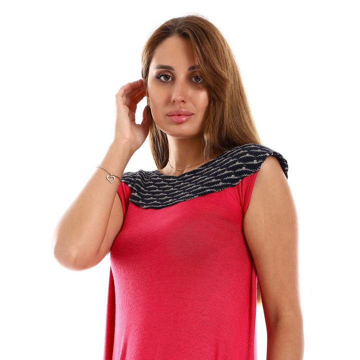 • تصميم بلا أكمام يمنح حرية حركة وإطلالة ناعمة مناسبة للموسم.