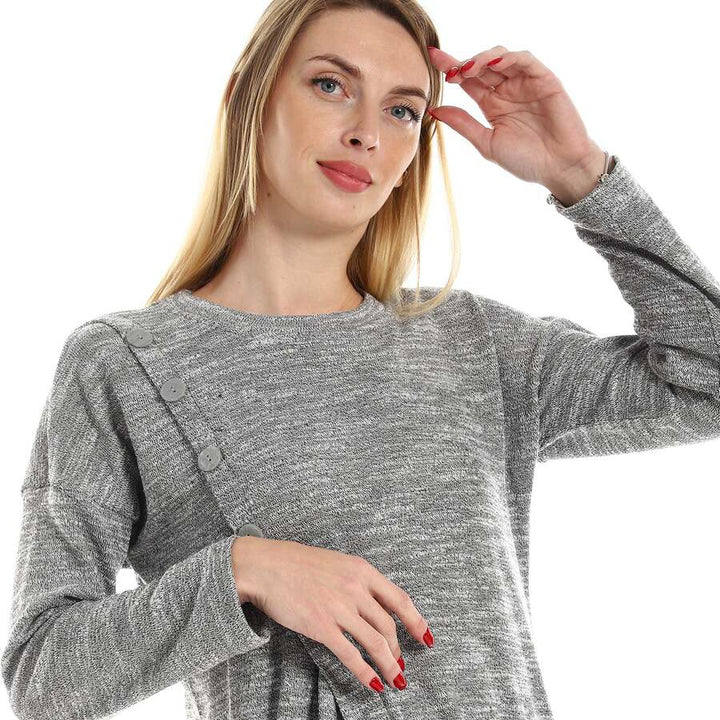 تونيك نسائي محبوك بأكمام طويلة وأزرار جانبية