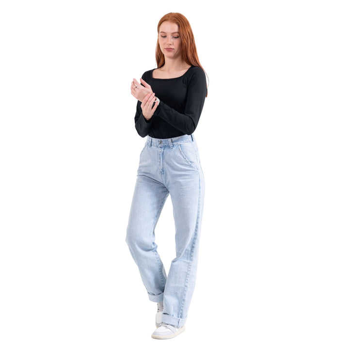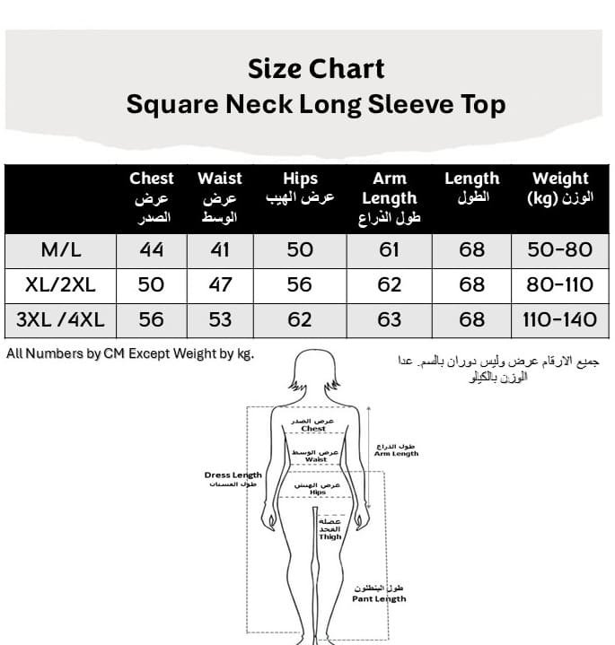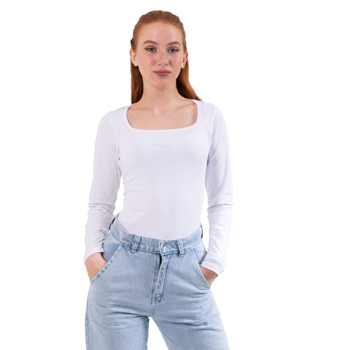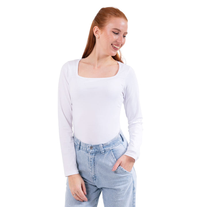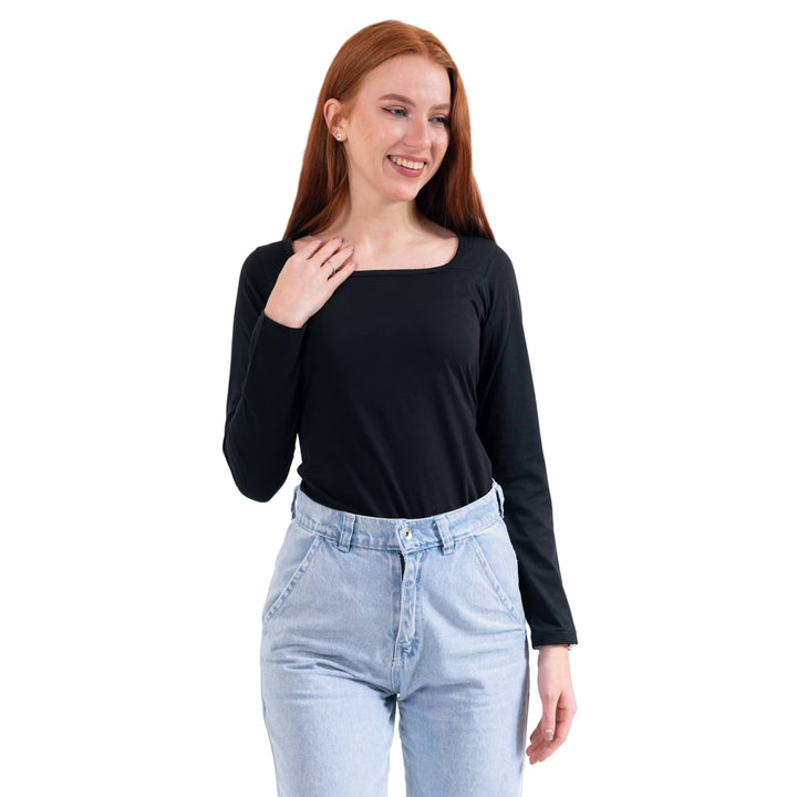 تيشيرت حريمي بأكمام طويلة رقبة مربعة